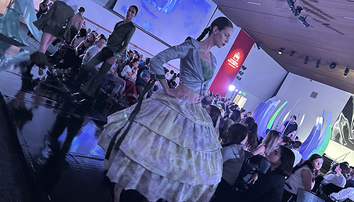 La primera generación de la carrera de Diseño de Moda y Textiles Sostenibles tuvo su pasarela final “Reflejos de Esencia”, en la que cada alumna y alumno hizo una colección que refleja quiénes son en el campo del diseño. El evento coincidió con la conmemoración de los 70 años del Departamento de Diseño de la IBERO, lo que creó un momento simbólico donde pasado, presente y futuro se encontraron sobre la pasarela, en el Auditorio José Sánchez Villaseñor.