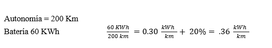 Para ello tomaremos el auto eléctrico eficiente analizado anteriormente con autonomía de 200 Km. con batería de 60 KWh.