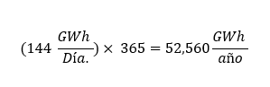 Para entender la magnitud de acuerdo a la generación eléctrica anual anteriormente señalada, multiplicaremos por los 365 días, así tener la referencia anual.