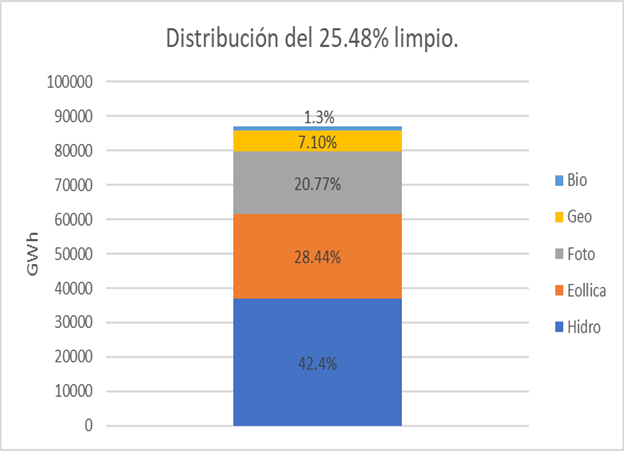 Para desglosar un poco más, en la siguiente gráfica se puede observar la generación de energía limpia por recurso.