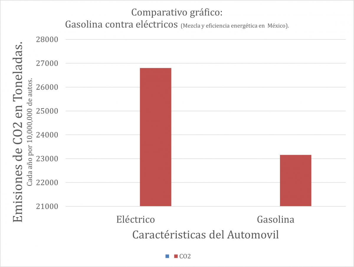 Consideremos primero tan sólo los 18.88 millones de automóviles. La fuente energética para abastecer de electricidad a estos vehículos en México no es tan limpia.