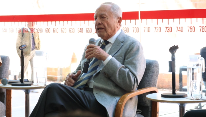 Sin discursos planeados, su voz cálida y amena fue resumiendo mediante palabras más de cinco décadas de trayectoria como diseñador de edificios públicos, complejos habitacionales e innovaciones arquitectónicas que lo han hecho un referente de la IBERO en México.