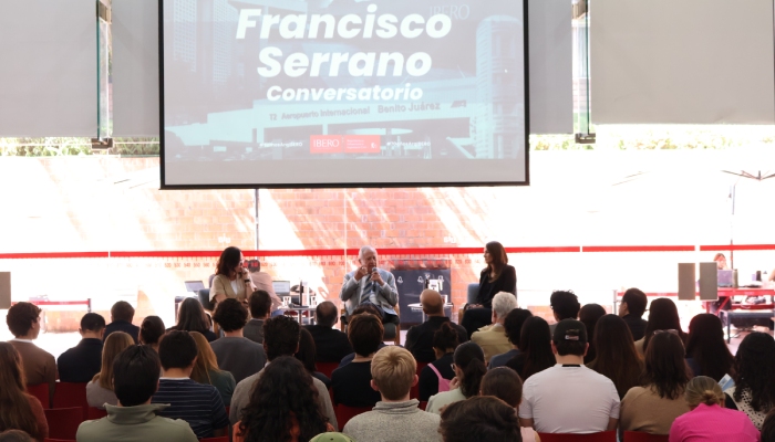 Acompañado de la Dra. Célida Isabel Gómez Gámez, Directora de Departamento de Arquitectura, Urbanismo e Ingeniería Civil, y la Dra. Jimena De Gortari Ludlow, Coordinadora de la Licenciatura de Arquitectura, el Arq. Francisco Serrano contó historias inspiradoras para recordar su paso por la IBERO y su vida profesional.