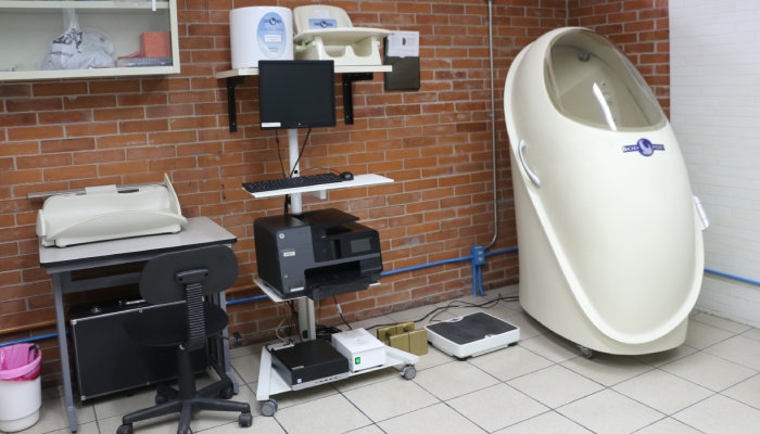Además, está en funcionamiento el Bod Pod, un dispositivo que se usa en nutrición para medir la composición corporal mediante pletismografía por desplazamiento de aire. Se considera un estándar de oro, es decir, más exacto y preciso. Tiene un costo de 200 pesos.