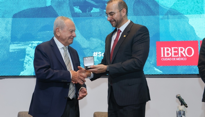 En el acto protocolario, también se le hizo entrega de la medalla de plata de San Ignacio de Loyola, que la IBERO CDMX otorga por su destacada trayectoria profesional y por su enorme contribución al desarrollo de la arquitectura en nuestro país.