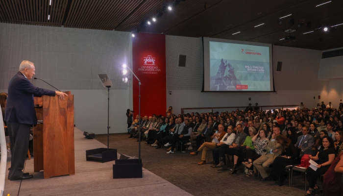 En la celebración, el Dr. Luis Arriaga Valenzuela, S.J., Rector de la IBERO, nombró a Tatiana Bilbao, Fernanda Canales, José Castillo, Pablo Pérez Palacios y Miguel de la Torre para recordar que desde su fundación, Arquitectura de la IBERO ha formado a profesionales comprometidos con el bienestar social, la sustentabilidad y la justicia.