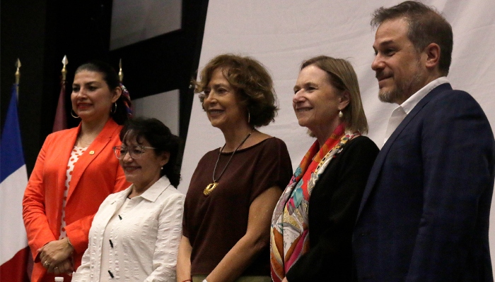 El Mtro. Luis Alejandro Kauachi Legorreta, Director de Internacionalización, representó a la IBERO en la ceremonia de inauguración, acompañado de la Embajadora de Francia, Delphine Borione; la Dra. Rosaura Ruiz Gutiérrez, Secretaria de Ciencias, Humanidades, Tecnología e Innovación; la Mtra. Yessica Gasca Castillo, Secretaria de Innovación e Integración Social del IPN; y la Dra. Alma Herrera Márquez, Rectora de la Universidad Nacional Rosario Castellanos.
