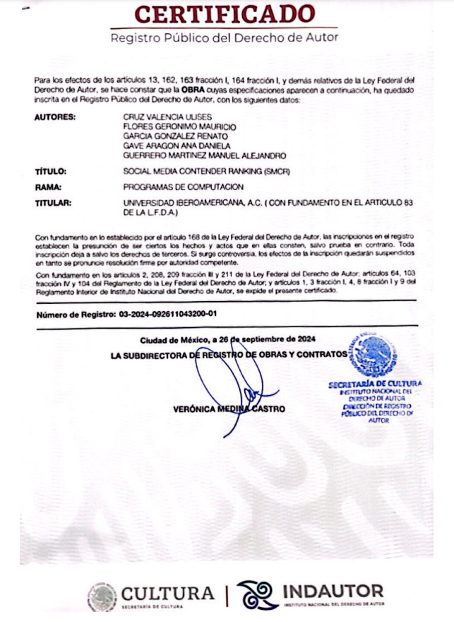 Es en este contexto que el Dr. Cruz y el Dr. Mauricio Flores Gerónimo, Coordinador del posgrado en Ciencias de la Ingeniería (Maestría y Doctorado), además de académico de Ingeniería en Ciencia de Datos de la IBERO, buscan aplicar su algoritmo Social Media Contender Ranking (SMCR) para medir la violencia digital y la desinformación, con el fin de contribuir a combatirlas.