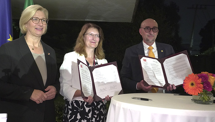 La ceremonia, realizada en la residencia diplomática, formó parte de la visita oficial a México de la Ministra Presidenta del Estado de Sarre, Anke Rehlinger, quien encabeza una delegación política y universitaria del 15 al 21 de septiembre. Como parte de la comitiva asistieron miembros de la presidencia de la htw saar, invitados a unirse a la misión oficial.