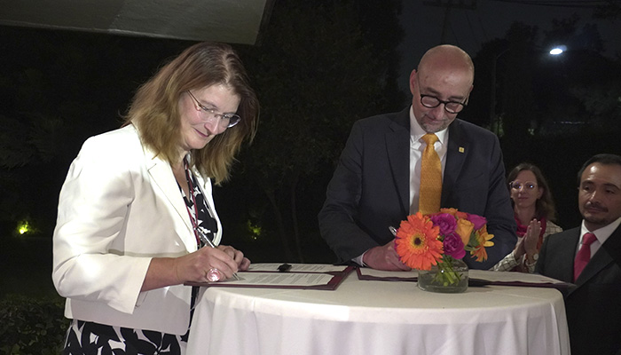 En un ambiente diplomático y académico, la Universidad Iberoamericana Ciudad de México (IBERO) y la Hochschule für Technik und Wirtschaft des Saarlandes (htw saar), de Alemania, renovaron su convenio de colaboración bilateral, con miras a impulsar un doble grado en Ingeniería Biomédica, el miércoles 17 de septiembre pasado, durante la recepción oficial ofrecida por el Embajador de Alemania en México, Dr. Clemens von Goetze.