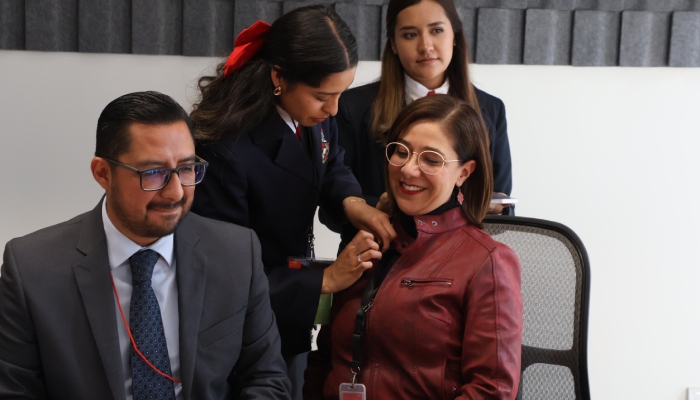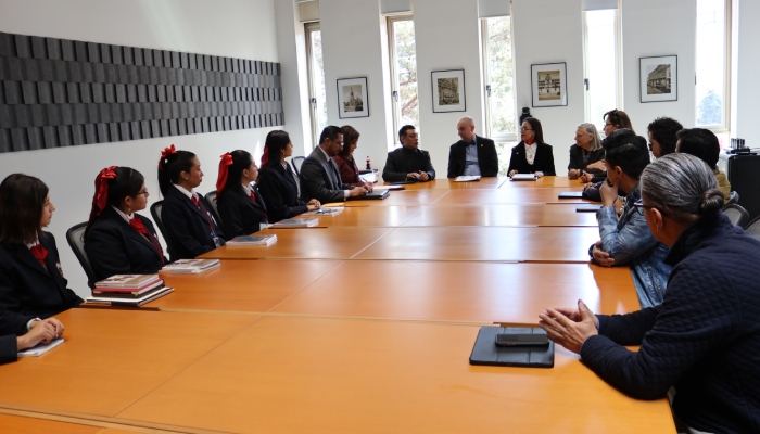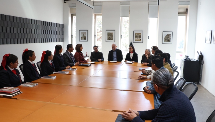 A la Sala de Juntas de la Vicerrectoría también se dieron cita la Mtra. Leticia Gómez Alemán, Subdirectora de Escuelas Normales, Lic. Raymundo Sánchez Zavala, Director General de Educación Normal del Estado de México, la Lic. Claudia Araceli Cureño Montes, y cinco estudiantes de la Escuela Normal No.3 de Toluca.