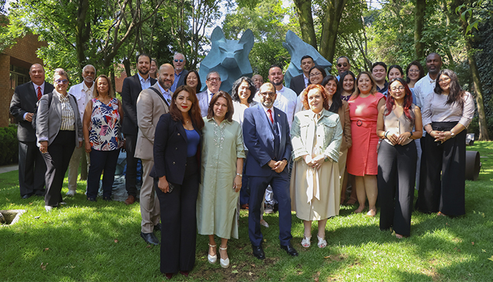 Legisladores de Illinois, autoridades de la IBERO y representantes del Instituto de Mexicanas y Mexicanos en el Exterior, en el Jardín de los Lobos. Foto: Elihú Cortés. |