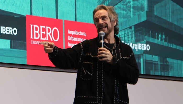 Michel Rojkind toma el micrófono y se pasea con sus pantalones negros rotos por el Auditorio José Sánchez Villaseñor -el más grande de la IBERO- para exponer que la Arquitectura no se trata solo de edificios; se trata de las manos que los construyen, personas que los habitan, las vidas que tocan y lo que pueden devolver a la comunidad.