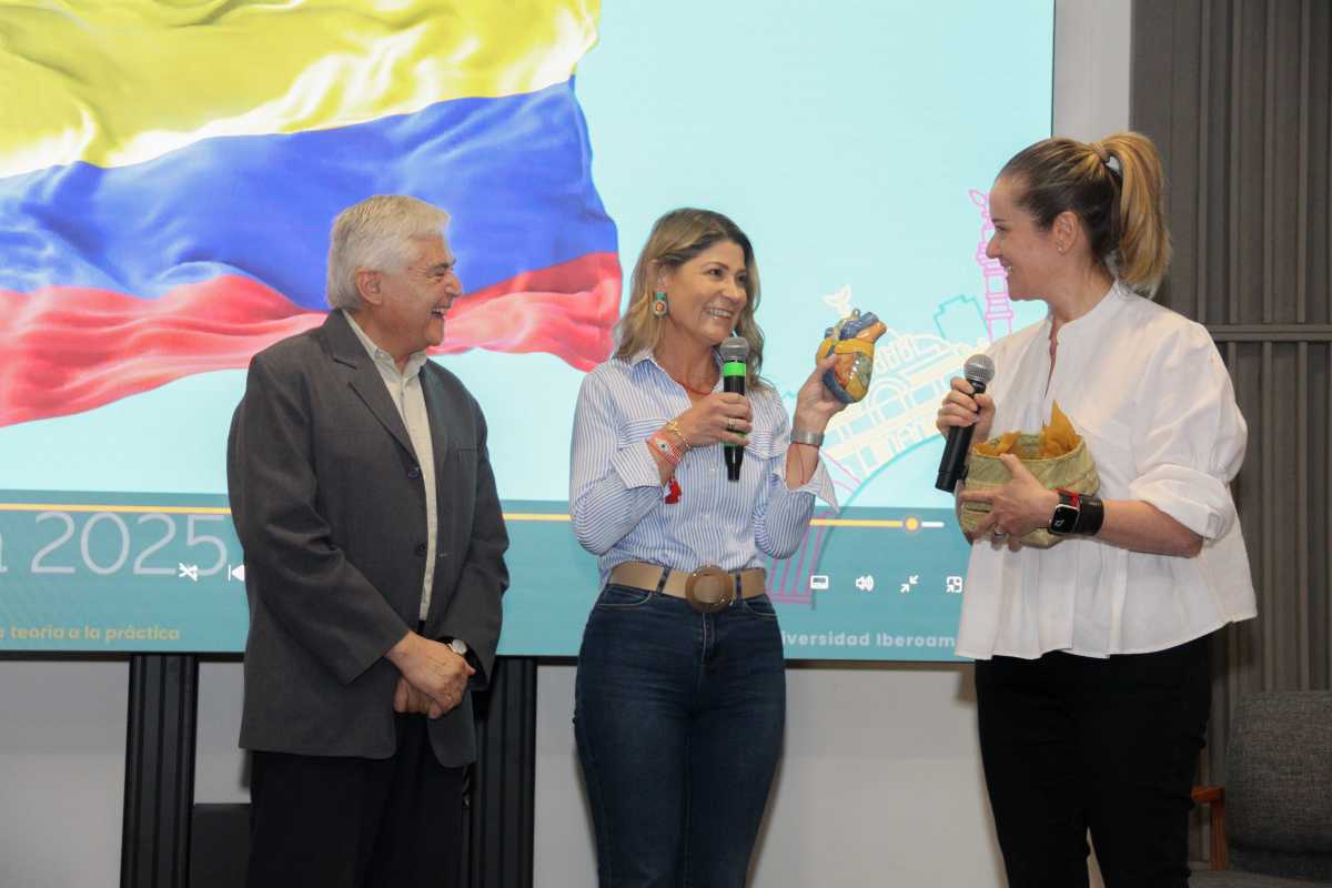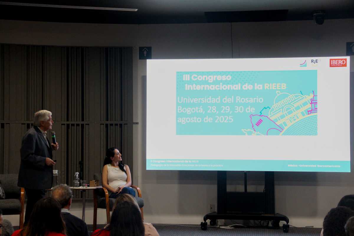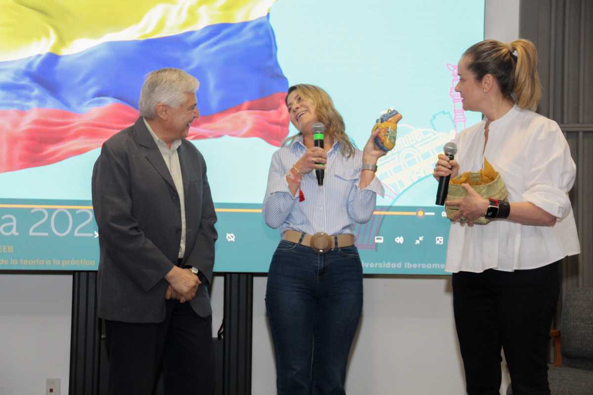 | Foto: (de izq. a dcha.) Dr. Rafael Bisquerra, presidente de la RIEEB; Ana María, Directora de relacionamiento de la Universidad del Rosario; Cimenna Chao, directora de la Dirección de Innovación Educativa en la IBERO. |