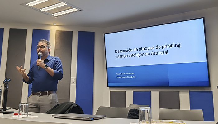 El hackathon comenzó con la conferencia magistral “Ciencia de Datos y Ciberseguridad”, impartida por el Dr. Lázaro Bustio Martínez, académico del Departamento de Estudios en Ingeniería para la Innovación (en la imagen de abajo). En ella expuso de qué manera la ciencia de datos potencia hoy las estrategias de ciberseguridad y cómo ambas disciplinas convergen para detectar amenazas digitales con mayor precisión.