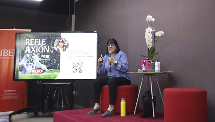 La Mtra. Montemayor hizo “la presentación en sociedad” de la Cátedra por sus 15 años de operación formal en nuestra universidad, durante la conferencia “¿Cómo potenciar los espacios sagrados?”, que impartió como parte del segundo ciclo de Refleaxión, organizada por la Dirección General de Vinculación Universitaria, en el Ágora del CEAN de nuestra casa de estudios, el pasado 27 de febrero.