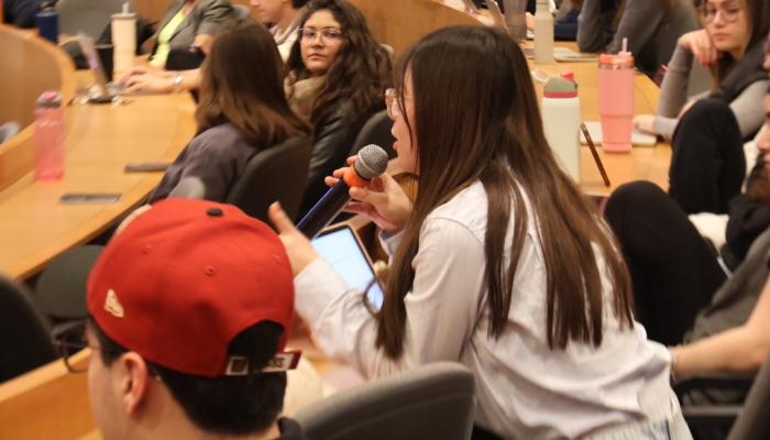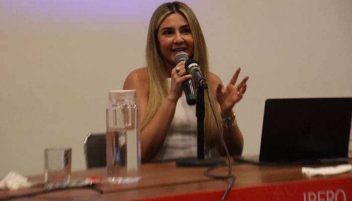 La Mtra. Claudia Arruñada, Académica de Tiempo Completo de la Universidad Iberoamericana (IBERO), se encargó de presentar al panel de expertos y expertas ante las y los estudiantes de esta carrera, quienes se congregaron en el Auditorio San Ignacio de Loyola para escuchar las experiencias y visiones de las personas invitadas que vinieron a hablar sobre las tendencias y el futuro del oficio publicitario.