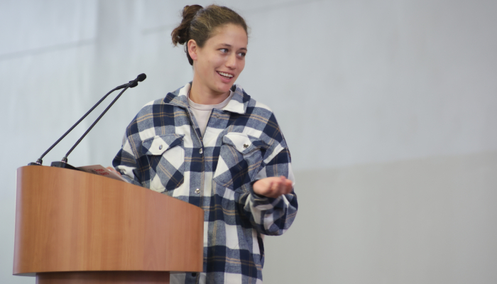 Isabel Gallo Pliego, egresada de la cuarta generación de la Prepa IBERO y hoy Ingeniera Agrónoma especializada en restauración de ecosistemas, permacultura y agroforestería también ofreció unas palabras para hablar sobre la experiencia que tuvo en las aulas y para recordar los momentos que vivió en su etapa adolescente.