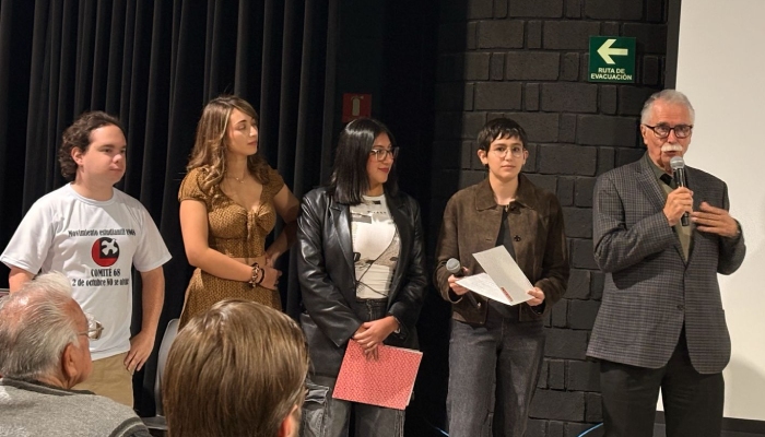 La proyección del documental Resistir el olvido abrió con la voz firme pero cálida de sus creadoras, Romina Ramírez y Valeria Covarrubias, quienes compartieron el origen del proyecto: una incomodidad, una indignación que las llevó a preguntar qué significa recordar y qué podemos aprender de quienes han dedicado la vida a no dejar de luchar. Junto a ellas participó Félix Hernández, histórico líder del Consejo Nacional de Huelga y del Comité del 68, cuya presencia convirtió la sala en un espacio de memoria viva.