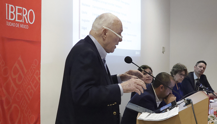En el presídium del evento, organizado por el Departamento de Estudios Empresariales (DEE), estuvieron presentes también el Dr. Juan Manuel González Sánchez, Director del Departamento de Estudios Empresariales IBERO; la Lic. Victoria Zapata; la Dra. Wendy Howell Hogan y Zsolt Feher.
