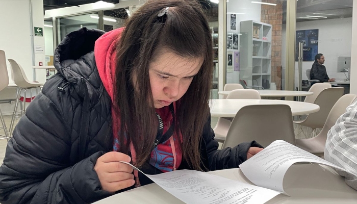 A Paula Ramírez Soto, le gusta tomar las clases de teatro y tramado. En Somos Uno Más de la IBERO ha aprendido a ser responsable, independiente y adulta. Entre sus talentos están bailar y pintar. Afirma que el Síndrome de Down no ha sido impedimento para que pueda seguir estudiando y trabajando.