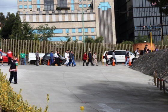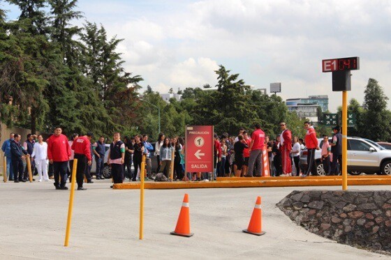 Previo a la llegada de los especialistas de la SSP y Protección Civil de la Ciudad de México, miembros de Seguridad y de la Brigada de Protección Civil de la Universidad Iberoamericana evacuaron y llevaron a la zona segura del estacionamiento de la pirámide a los varios cientos de personas que en ese momento realizaban sus actividades de rutina en la cafetería e instalaciones deportivas.