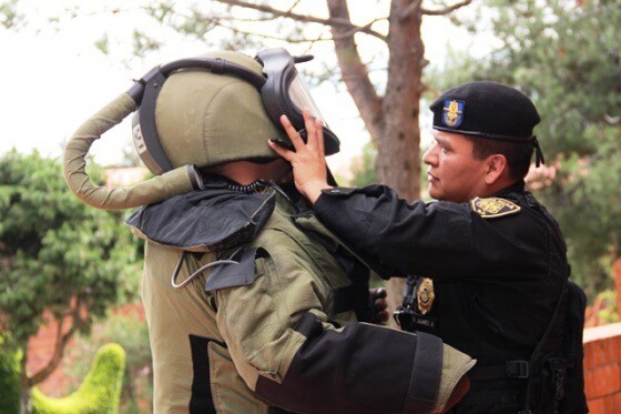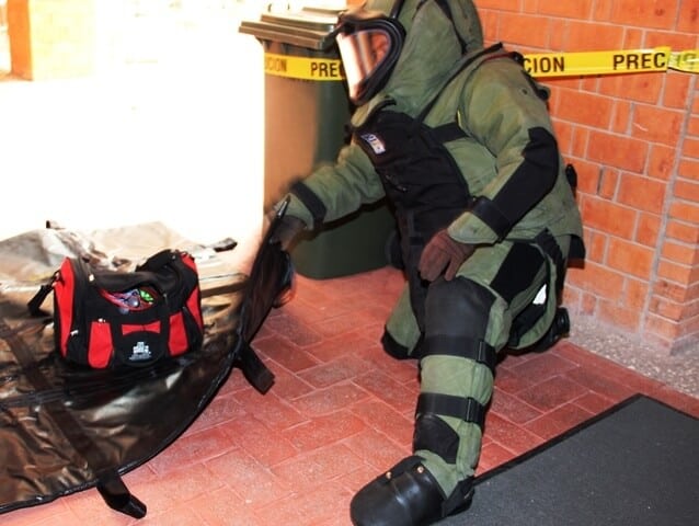 Se le equipó con un traje antibombas, entró, tomó el paquete (una mochila), lo envolvió con una manta supresora de kevlar (destinada para contener cualquier tipo explosión) y se retiró del lugar con el objeto.