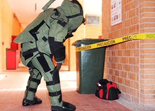 El policía primero Alfredo García Peralta, jefe de Unidad Departamental en el Grupo de Explosivos del Agrupamiento Fuerza de Tarea, explicó que al llegar a la universidad su técnico se acercó y verificó que en efecto (supuestamente) existía un tipo de riesgo.