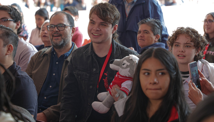 En la explanada central, el Padre Rector les invitó a construir una propia voz y fortalecerla en medio del ruido, para responder a los desafíos actuales y para estudiar en la IBERO: una universidad que propone el diálogo como método y actitud fundamental frente a la complejidad del presente.